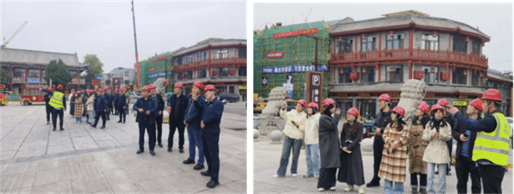 在项目现场,全体党员认真听取了绛州古城保护与改造项目的实地讲解,深入了解项目在古城保护与更新中的实践做法与技术创新。双方重点围绕传统建筑施工工艺与现代改良工法的结合展开交流,特别关注大木作技艺的传承与应用。项目团队在深入考究绛州古建筑形制基础上,广泛运用柱、枋、梁、檩等传统构件,并在重点建筑修复中采用榫卯结构等传统工艺,结合现代工程管理手段,实现“修旧如旧”,延续古城历史文脉。